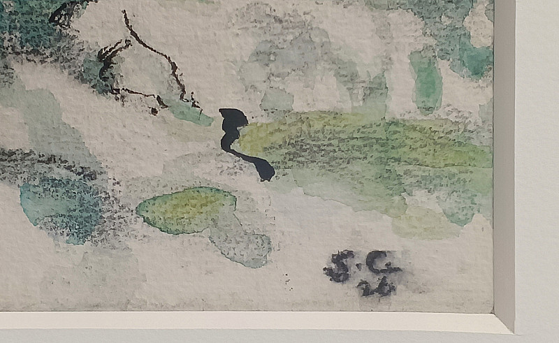 Dunes depicts a serene coastal landscape, with rolling hills covered in lush vegetation. The scene captures the rugged terrain with a mixture of greens and subtle earth tones, suggesting a natural, untouched environment. The distant horizon shows the ocean, creating a sense of depth and openness. The soft brushstrokes and muted colour palette contribute to a peaceful, contemplative mood. The linework in the foreground hills is expressive, giving a slight impressionistic feel, yet the composition maintains enough detail to reflect the natural beauty of the landscape.