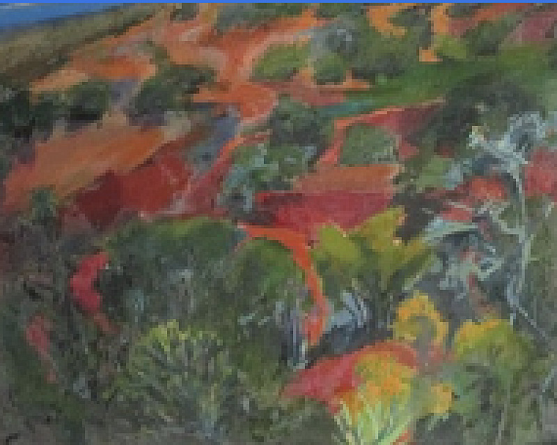 Eastern Cape Landscape (1994) by Niel Bally is a depiction of the Eastern Cape region's natural beauty. The painting captures rolling hills and open fields with gentle brushstrokes, highlighting the earthy tones of the land. The sky, painted in soft hues, complements the landscape below, evoking a sense of peace and timelessness. Bally's attention to light and shadow adds depth, making the scene feel both familiar and nostalgic, showcasing the tranquility of rural South Africa.