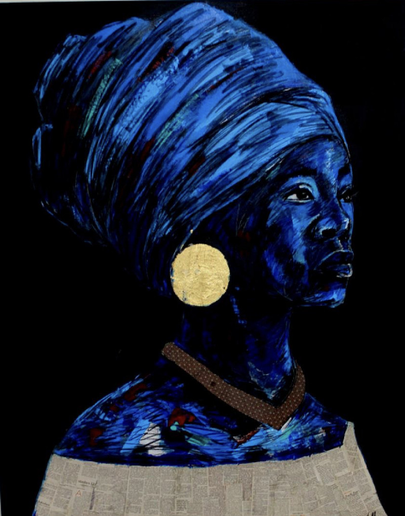 uMfazi by Ennock Mlangeni was initially created to comment on the changing traditional roles women are expected to fulfill once they're married and become wives. The artist used newspaper as a common household item, the manner in which is it used, speaks to how women in the past were expected to take care of the household, a role which restricted them in their desire to be financially independent.